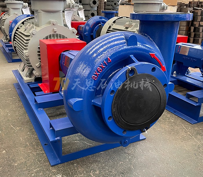TSB8×6×14離心式砂泵主要是用來給除砂器、除泥器、混漿器等提供具有一定排量和壓力的鉆井液,以保證這些設(shè)備高效工作。該泵適合于4000~7000m鉆機(jī)配套使用。